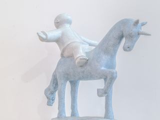 Resting against the word “LOVE” that is carved out of the tree trunk, a family is depicted sailing off into the seas ahead. A canopy of white flowers sprouting from the tree trunk is stabilising and holding the tree trunk afloat. The white flowers a representation of a pure and trusting love that help the family sail forward as one. Through this piece, Coplu illustrates a pure love and bond as the foundation for a family to sail forth.