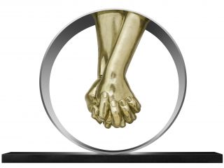 Lorenzo Quinn was born in Rome in 1966. Although he was raised in both the United States and Italy, it was in Italy where he discovered his love for art. Quinn can be described as a prodigy in the art world. Lorenzo's work is included in many impressive private collections throughout the world, which has lead to a prodigious amount of commissioned work. This includes being commissioned by the Vatican to sculpt the likeness of Saint Anthony. Many of Lorenzo's sculptures often featured the symbol that has become synonymous with Lorenzo's work - the human hand. "The reason I sculpt the hand is because I need to communicate in a universal language, especially since I exhibit in five continents. The use of this hand language helps me achieve this, creating a dialogue." Lorenzo seeks inspiration for his sculptures from everyday life and believes art should not be merely decorative but have meaning; transmit emotions, as well as being aesthetically well-balanced.