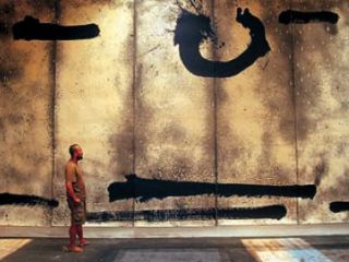 Xie Ai Ge creates the outline for her ‘lead’, a sculpture part of her “Tree Top” series. In this work reminiscent of the artist’s own childhood, she etches two figures, one boy and one girl, balanced on a black rock as their playful push and pull allows them to remain perfectly in sync. This whimsical work reminds the viewer of children’s banter, while asking them to ponder the balance between yin and yang and the natural order of the universe.