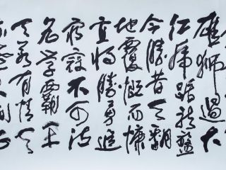 To achieve bolder, more striking, and compelling hues, I combine vibrant pigments with traditional Chinese ink and colours. Stroke by stroke, layer upon layer, I apply the colours to build intensity and convey the weathered surface of ancient stone.”