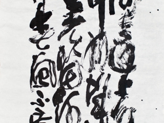 Lim Tze Peng writes the characters of 卜算子詠梅 or Ode to the Plum Blossom by Lu You (1125-1210) - a famous Song Dynasty poet and government official. The poem reads: 驿外断桥边,寂寞开无主。已是黄昏独自愁,更著风和雨. 无意苦争春,一任群芳妒。零落成泥碾作尘,只有香如故。 It translates to: Near the broken bridge outside the fortress I go, lonely and disoriented. It is already dusk and I am alone and anxious, more so when the wind and rain start to blow. I do not mean to fight for Spring, I would rather be alone and envied by the crowd. I will fall, become earth, be crushed to dust. My glory will be the same as before. The poem addresses the loneliness of the Plum Blossom which thrives in winter when other plants fail and is a symbol of resilience and perseverance in Chinese culture. In the same vein, the poet Lu You felt gloomy and disappointed with his corrupt fellow officials. He would rather forge a path on his own and be envied and excluded by the others, remaining steadfast to his beliefs.