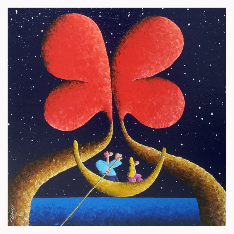 Born in the Turkish town of Ushak, Coplu brought into the art world his distinctive style of cartoons, filled with warm and sentimental characters that range from silly to profound. Highly recognized and exhibited, the artist has won many competitions and accolades for his artworks and has been published in various media in Turkey, South East Asia and across Europe. He has also established an Open Air Cartoon Exhibition Space and the Cartoon School of Antalya. Part of many prestigious collections, the artist has been exhibited the world over, including France, Italy, the US, Germany and Spain.