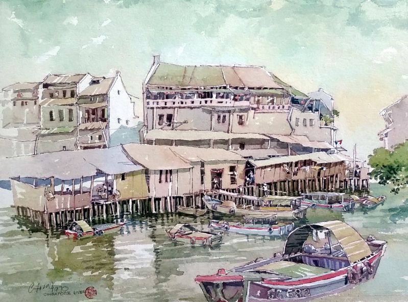 Chin Chun Wah was a founding member of the Singapore Watercolour Society in 1969 and a budding artist that lead several art groups here in the late 1960s and early 1970s. He was known for his sketches in pen and wash - a painting technique using marker pens and watercolours to depict scenes with light, deft strokes rendered within minutes. After graduating, he worked briefly at the former Radio and Television, Singapore, the Culture Ministry, as well as the Housing and Development Board as an artist and designer. He gave up painting when he joined developer Far East Organization as its advertising manager in 1977. He won first prize in the Parks and Recreation's logo design competition and a year earlier in 1976, attained the third prize in an art competition organized by OCBC Bank in conjunction with the completion of its skyscraper in Chulia Street. He retired from Far East in 1999 and became an avid golfer.