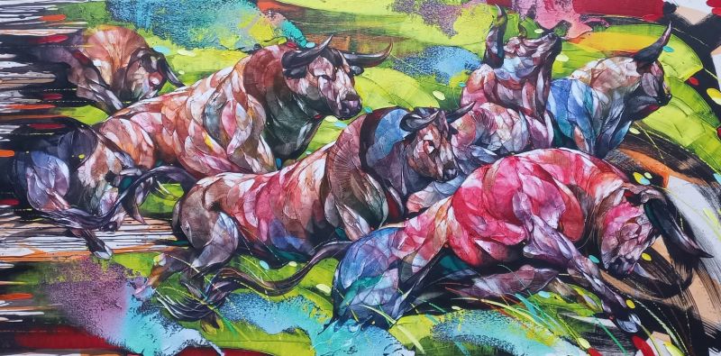 Tjokorda Bagus Wiratmaja was born in 1984 in Gianyar, Bali and enrolled in SMK N1 High School Sukawati with a specialization in Art, going on to graduate from The Indonesian Art Institute (ISI) in Yogyakarta with a Masters in Fine Arts. Tjokorda creates artworks stemming from intense emotion and fearless color exploration, with layered and textured canvases that sometimes use elements such as sand and pigment powder to achieve their finishing.
