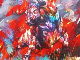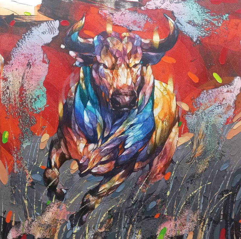 With a determined look, the bull charges forward in the wilderness. Historically, bulls have been crucial for agricultural work. They have been used in plowing rice fields and other farming activities, making them essential to the agricultural practices and livelihoods in rural areas. Additionally, bulls are seen as symbols of strength, power, and fertility. This symbolism is reflected in various aspects of traditional art, folklore, and mythology.