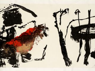 The trails of watercolour form an amorphous mass upon the surface of the paper, mimicking the effect of a heavy downpour on one's vision. However, one is still able to make out the rough forms of Deng Cheng Wen's signature figures - who trudge onwards with hands concealing each of the eyes of the people before them. Placed in the context of a thunderstorm, their situation is all the more pitiful and the lack of direction is made more apparent. One wonders about the future of this lost generation of Chinese youth, who are trapped within the confinements of societal expectations and follow along for fear of judgment and critique.