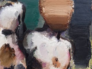 Wu Liang Yu's figures are characterized with a red tie which is part of every Chinese student's uniform. To Wu and many young artists growing up under the Communist regime, this also represents the expectations of society towards youths. Constantly looking upwards with a beaming smile, the figures in Wu's sculptures reflect an insatiable desire for affirmation from authorities. The sculpture consists of a man and woman and their upper half of their bodies are combined together. They are also placed on a flower-shaped pedestal, which echo the title of the work, Flower of the Nation.